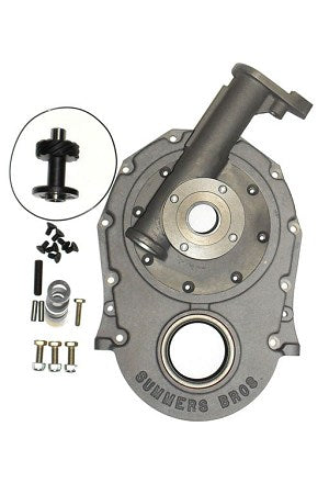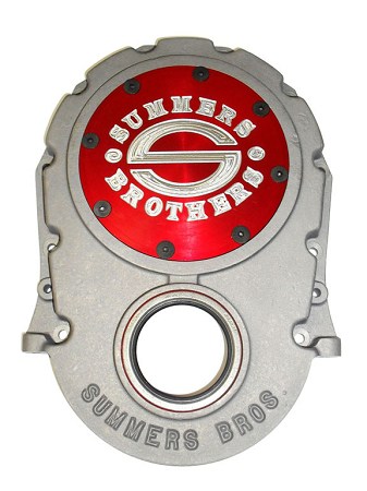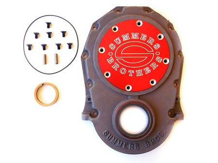Timing chain cover with adaptor disc for big-block Chevrolet
